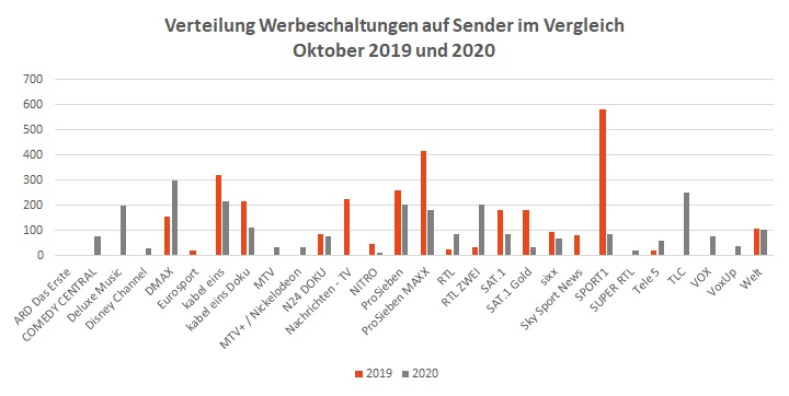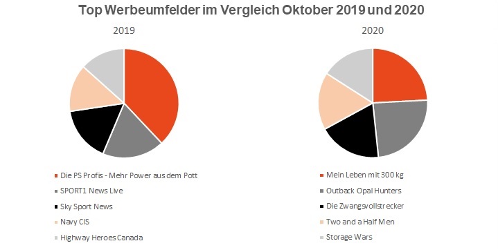 Bei genauerer Betrachtung der Sendeumfelder zeigt sich, dass die TV-Kampagnen der Reifenhersteller Oktober 2019 besonders während sportbezogenen Sendungen ausgestrahlt wurden. Oktober 2020 hingegen wurden die TV-Kampagnen hauptsächlich während TV-Formaten aus dem Bereich Reality-TV gezeigt.