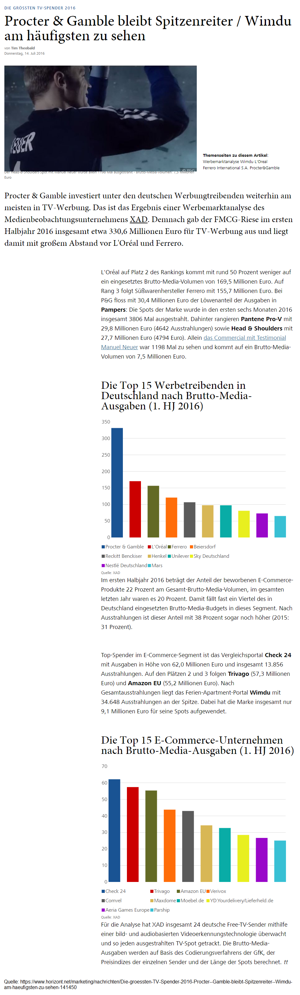 Höchste Investitionen in TV-Werbung im 1. Halbjahr 2016